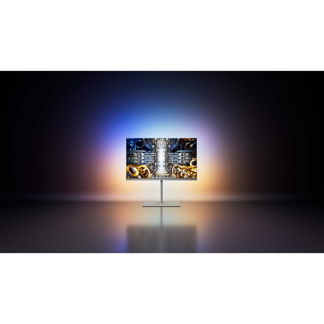Despite its cutting edge picture and audio contained within, the Philips 65OLED959 is a sleek and unobtrusive TV. The super-slim metal bezel and subtle speaker grille help you focus on the picture, without distraction. Unique to the OLED959 model, an aluminium stand makes this a freestanding TV with a premium style that suits any décor.