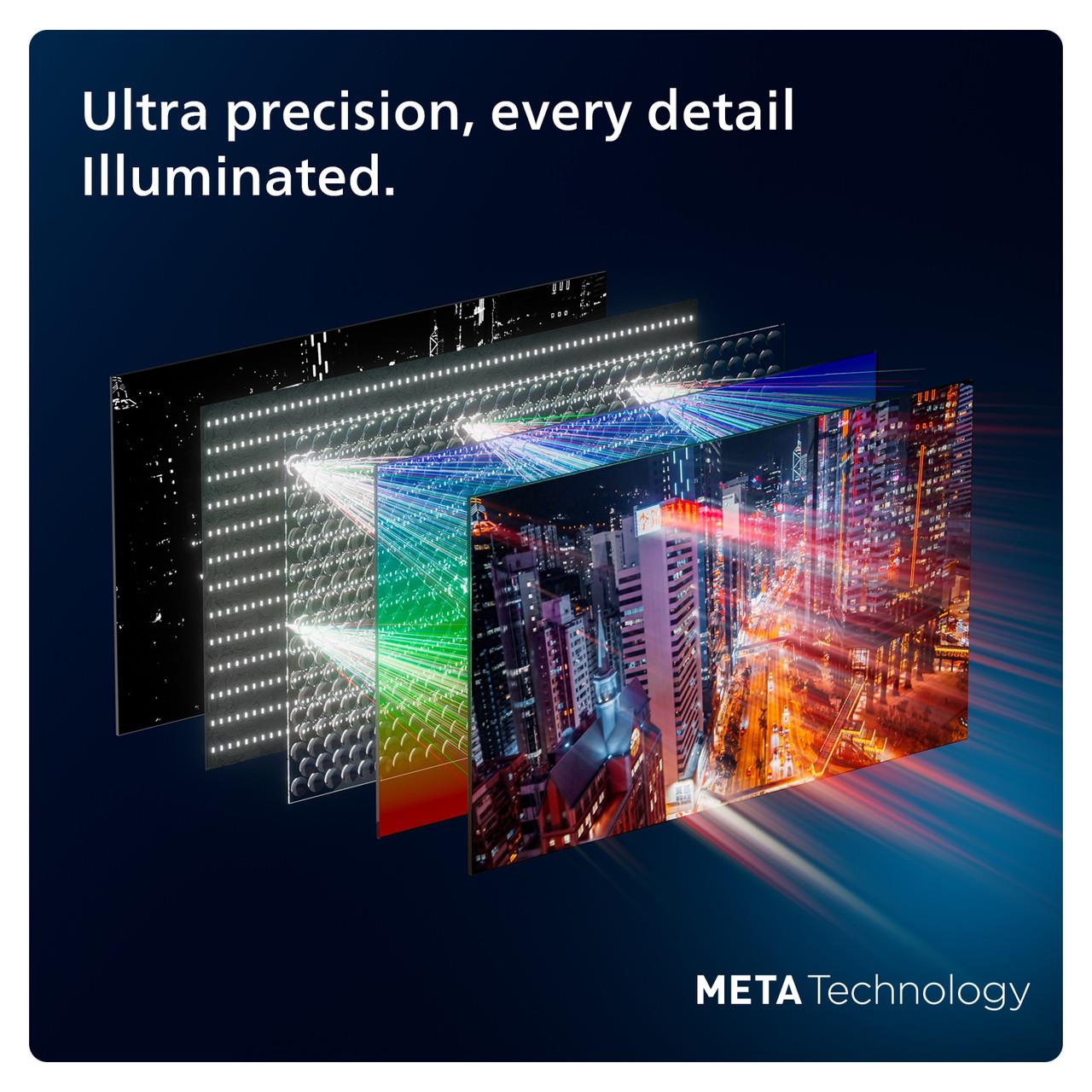 Featuring the second generation MLA (Micro Lens Array) technology, the Philips 65OLED959 delivers sensational picture brightness. MLA uses a layer of tiny lenses to improve the screen’s focus. The latest version uses MMB (Meta Multi Booster) for selective peak brightness that’s significantly higher than usual. Enhanced brightness brings images to life, with more realistic and natural colour. Brighter screens also perform better in daytime lighting, letting you see more detail than you otherwise would with a conventional OLED screen.