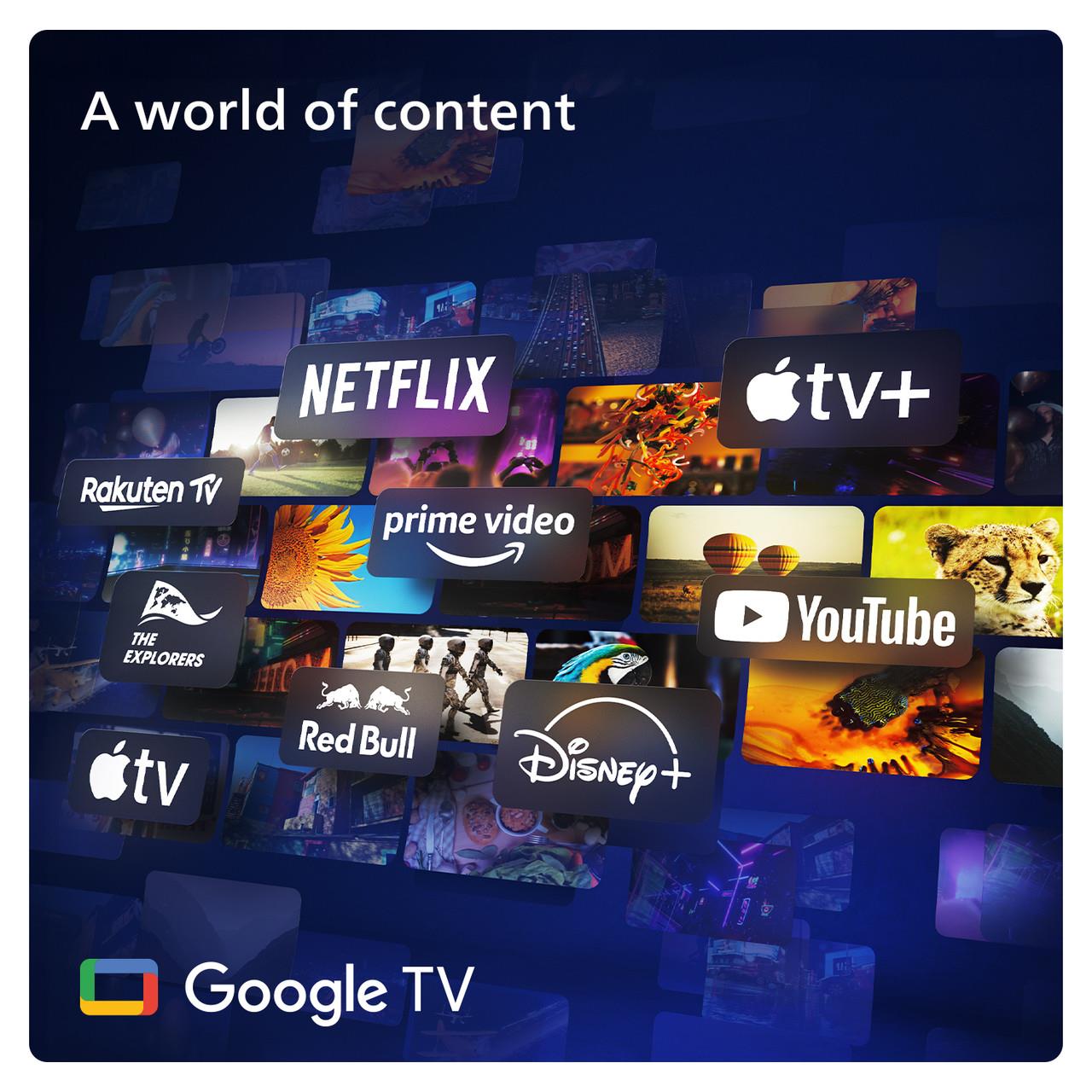 Using Google’s world-class interface, Google TV makes accessing this Philips TV’s smart features a breeze. Providing access to over 700,000 movies and TV episodes and over 10,000 apps and games, Google TV covers all the Smart entertainment you need. With access to Netflix, YouTube, Amazon Prime, Apple TV and Disney+, all your favourite streaming services are covered. Customise your home screen with the apps you use the most, enjoy recommendations, curate your movie nights and even add to your watch list via your smartphone – Google TV makes sense of Smart TV.