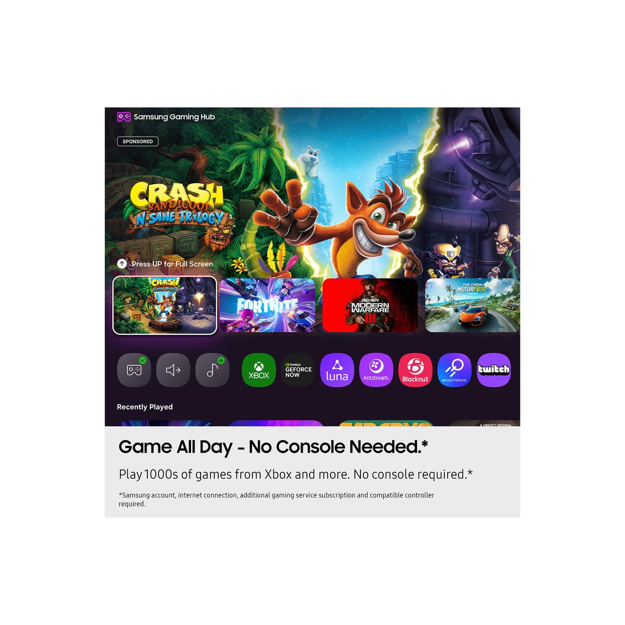 *Samsung account, internet connection, additional gaming service subscription and compatible controller required. Gaming Hub not available in Republic of Ireland.